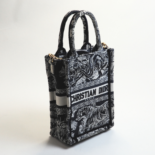 Book Tote Toile de Jouy Reverse Embroidery Mini Vertical Blue